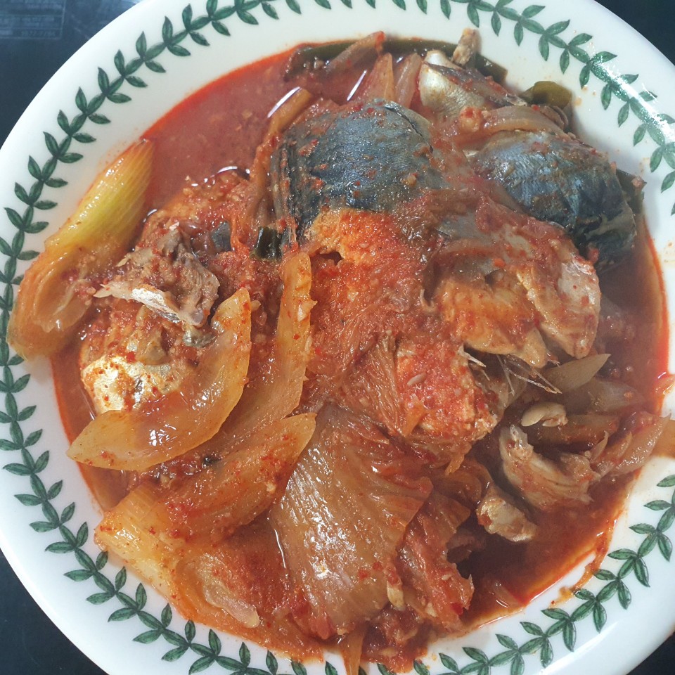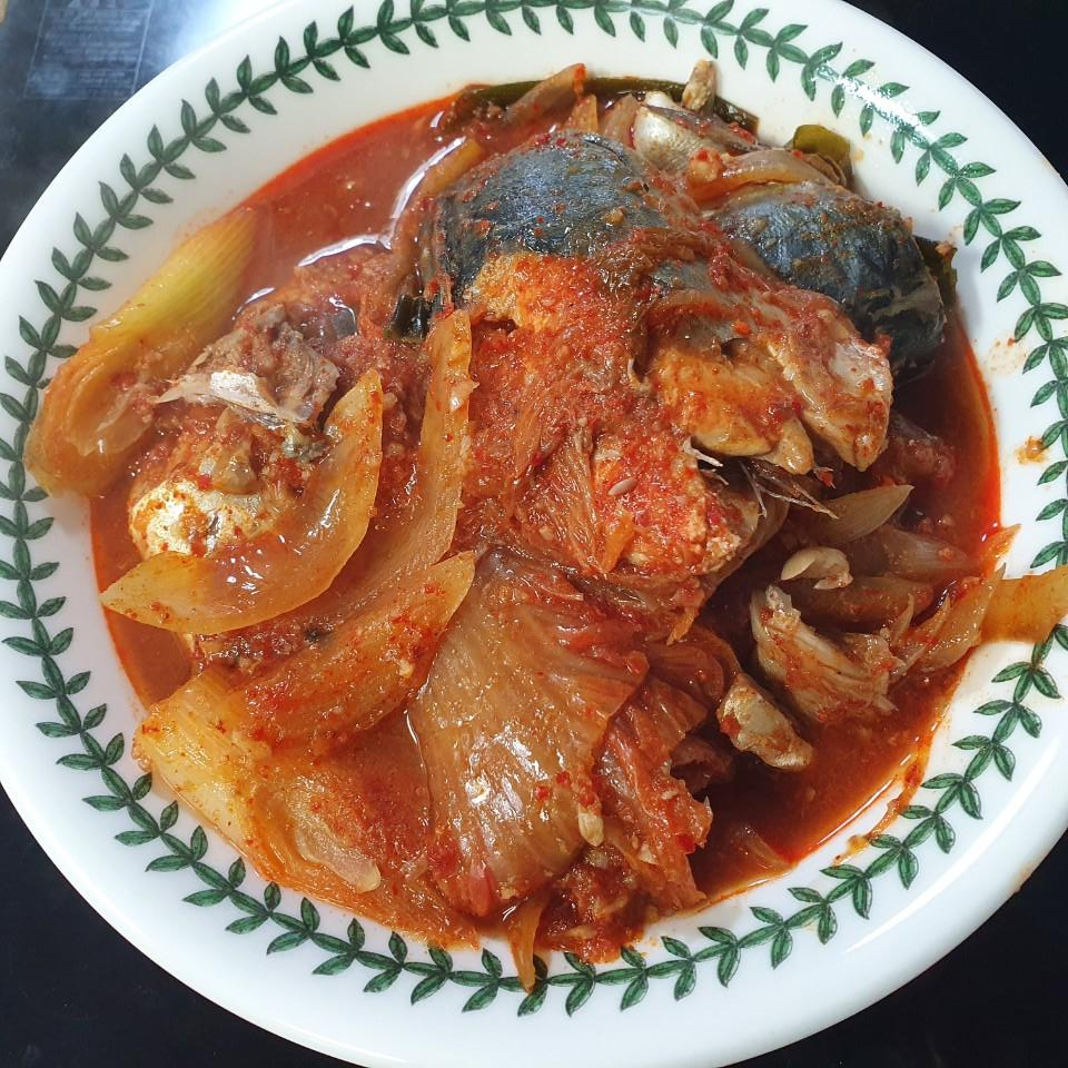 완성된 묵은지 고등어조림입니다. 묵은지에 고등어의 맛이 배어들어 김치만 먹어도 구수하니 맛납니다.