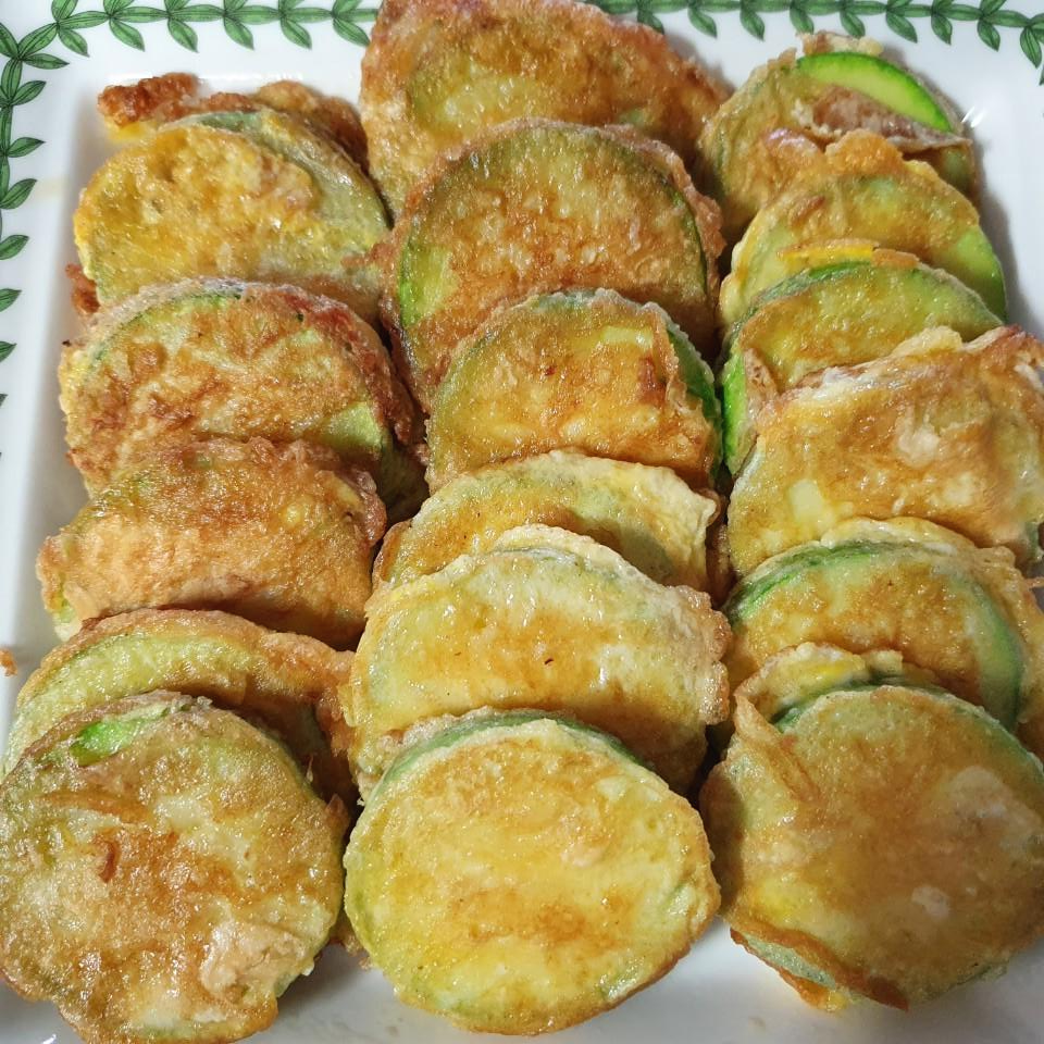완성된 호박전입니다. 평상시 반찬으로도 손님 초대 요리에 놓아도 전혀 손색이 없는 호박전입니다. 모양도 이쁘고 맛도 좋은 호박전이지요.